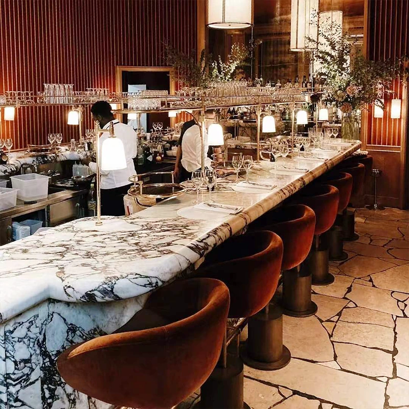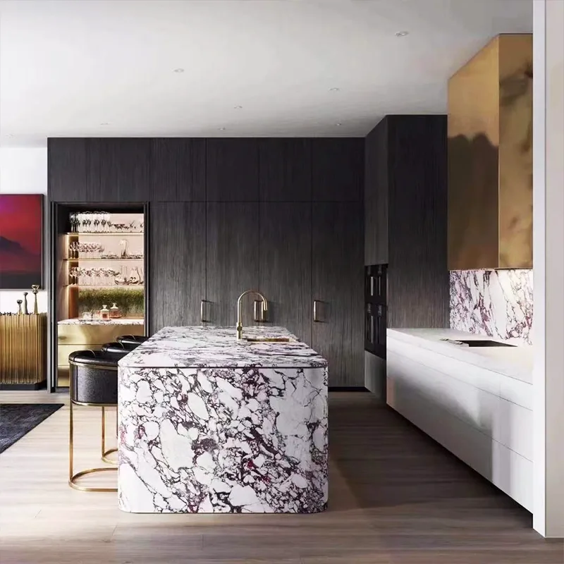 นอกเหนือจากเคาน์เตอร์แล้ว Calacatta Viola Marble Sinks และ Tables Viola Marble เป็นตัวเลือกที่ต้องการเพื่อเน้นพื้นที่รับประทานอาหารและห้องน้ำ ความสามารถในการปรับตัวของหินทำให้การรวมตัวกันอย่างสมบูรณ์แบบในการออกแบบหลายอย่าง - จากสมัยใหม่จนถึงแบบดั้งเดิม - เป็นไปได้