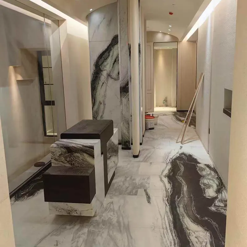 Dalmata Marble (หรือที่รู้จักกันในชื่อ Panda Marble หรือ Panda White Marble) เป็นหินธรรมชาติของบราซิลที่มีพื้นหลังสีขาวที่โดดเด่นด้วยเส้นเลือดดำและสีเทาไหล ผลที่ได้คือรูปลักษณ์ทางศิลปะที่น่าทึ่งบ่อยครั้งเมื่อเทียบกับจังหวะแปรงหมึก