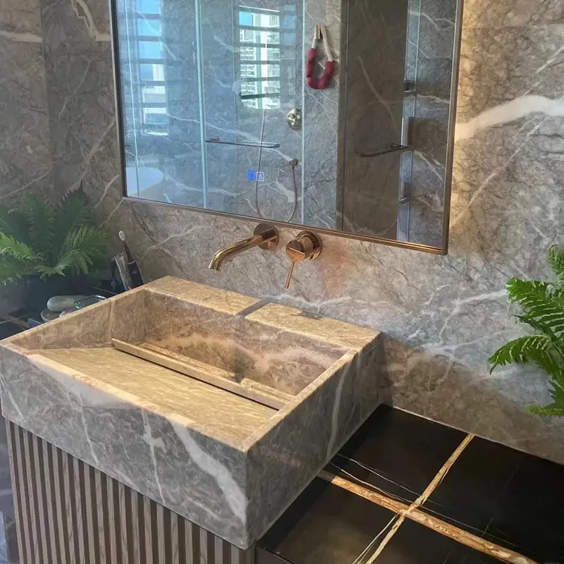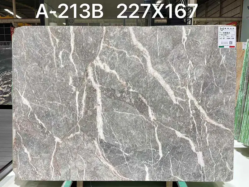 สุนทรียศาสตร์: หลอดเลือดดำที่ไหลออกมาในพื้นผิวหินอ่อน Fior di Bosco เลียนแบบแม่น้ำหรือกิ่งไม้ หนึ่งในวัสดุที่สงบเงียบที่สุดในการใช้ประโยชน์จากความสวยงามมันสร้างบรรยากาศที่เป็นธรรมชาติและฝัน