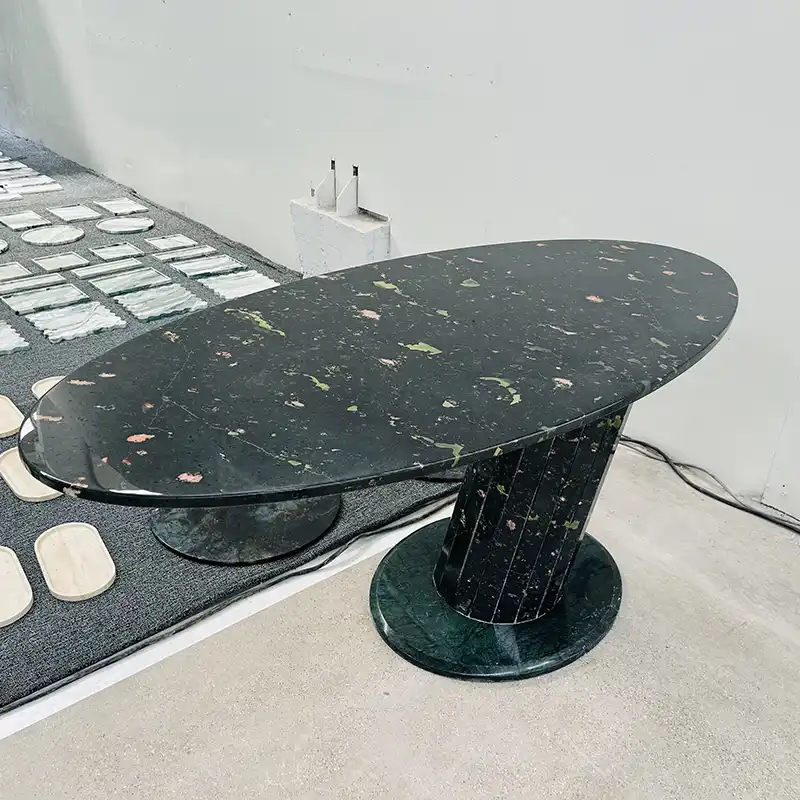 โต๊ะรับประทานอาหารหินอ่อนสีเขียวในรูปไข่โต๊ะรับประทานอาหารทรงกลมโต๊ะรับประทานอาหารสี่เหลี่ยมและรูปทรงเรขาคณิตตามความต้องการเป็นเทรนด์ล่าสุด โต๊ะรับประทานอาหารหินอ่อนสีเขียวนี้มีความต้องการมากเนื่องจากสไตล์และฟังก์ชั่น