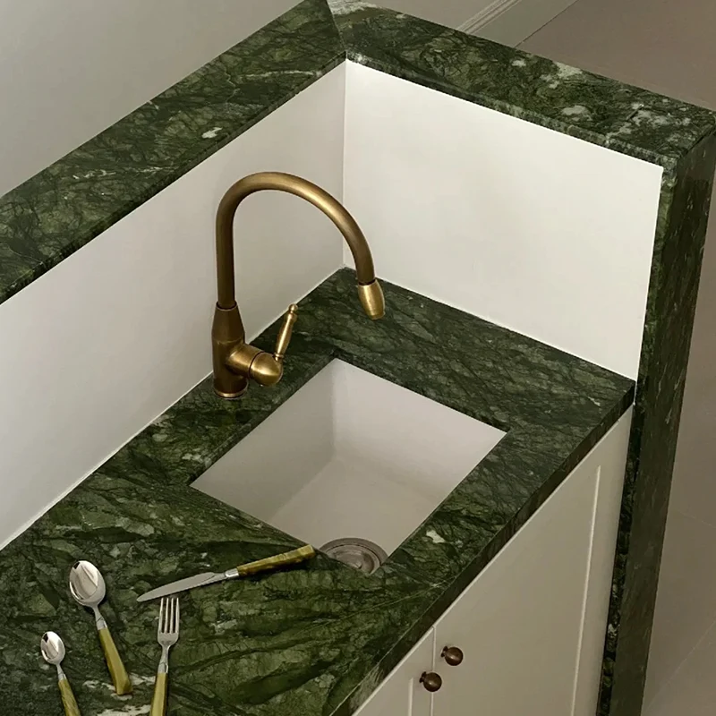 Ming Green Marble Slab เป็นหนึ่งในหินจีนที่ได้รับความนิยมมากที่สุดในหมู่นักออกแบบ สีพื้นหญ้าสีเขียวตามธรรมชาติทำให้พื้นที่เพิ่มขึ้นและสร้างความรู้สึกที่เป็นธรรมชาติมากขึ้น Wow Stone เสนอโต๊ะรับประทานอาหารหินอ่อนหมิงสีเขียวแบบกำหนดเองเคาน์เตอร์และผลิตภัณฑ์อื่น ๆโรงงาน: Xiamen Wow Stone Co. , Ltd.ประเทศต้นกำเนิด: จีนMOQ: 1 พีซีพื้นผิว: ขัดเงา