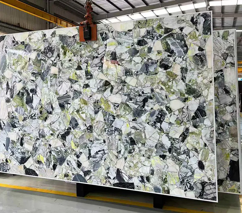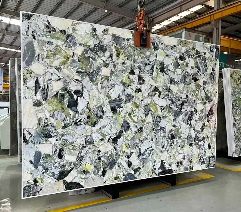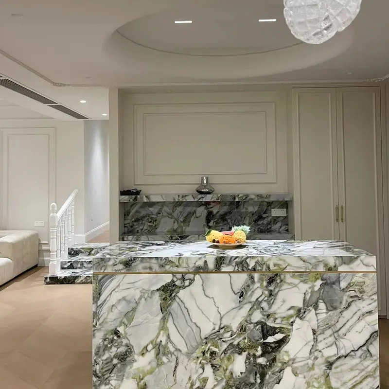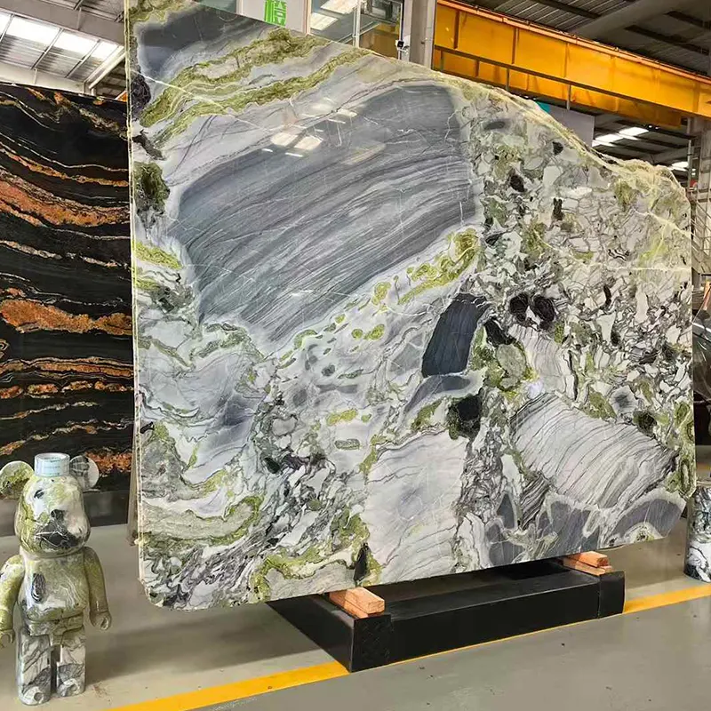 หินแกะสลักธรรมชาติที่เปล่งออกมาจากยูนนานจีนหินอ่อน Primavera หรือหินอ่อนสีเขียวน้ำแข็งและหินอ่อนสีเขียวหยกน้ำแข็งมีความสวยงามอย่างไม่น่าเชื่อ จัดอยู่ในประเภทหนึ่งในหินอ่อนสีเขียวที่สวยงามมากที่สุดที่พบในโลกทั้งโลกมีพื้นหลังสีเขียวที่สดใสและเส้นเลือดดำและสีดำที่โดดเด่น จัดหมวดหมู่ด้วยชื่อของหินอ่อนหยกเย็นและหินอ่อนความงามสีขาวหินก้อนนี้นำความสดใหม่พลังและความหรูหรามาสู่ทุกห้อง