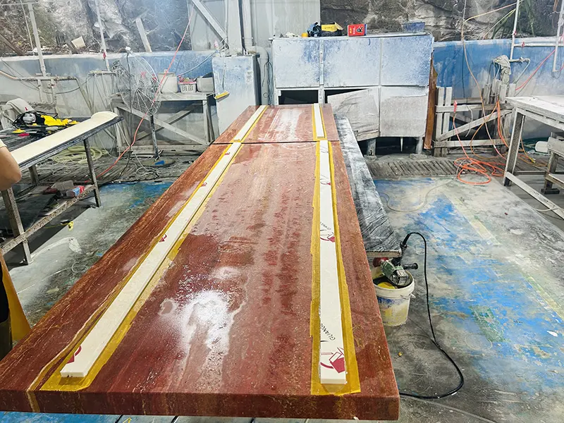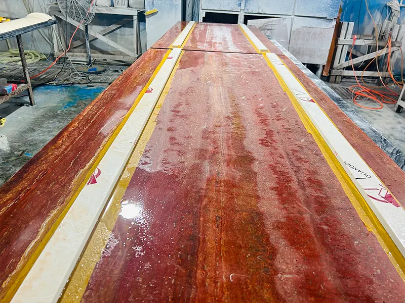 โต๊ะกาแฟ travertine สีแดงไวต่อการย้อมสีหรือไม่?