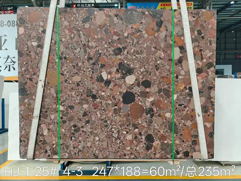 หินแกรนิต Rosa Marinace และ Red Marinace หินแกรนิตเป็นที่รู้จักกันดีสำหรับการรวมเหมือนก้อนกรวดของพวกเขา; Rosso Ceppo Marble มีรูปลักษณ์ที่สวยงามกว่า บิตฟอสซิลของ Rosso Ceppo นั้นเล็กกว่าและสง่างามกว่าลวดลายที่วุ่นวาย มันเป็นการผสมผสานที่เหมาะกับพื้นผิวที่ซับซ้อนและสีที่แข็งแรง