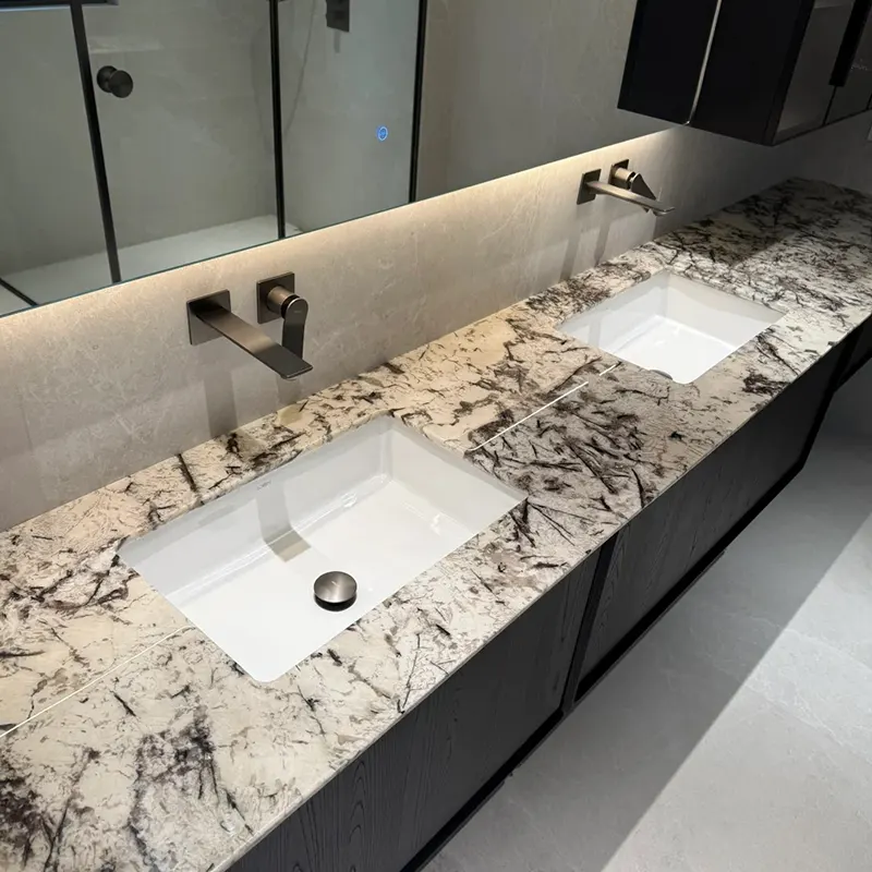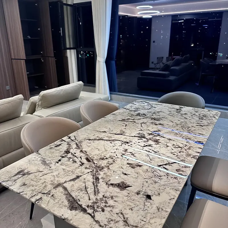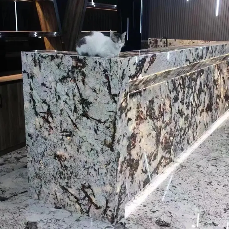 Silver Fox Granite เหมาะสำหรับการใช้งานแบ็คไลท์เนื่องจากเป็นวัสดุกึ่งเทรนด์ ทำด้วยหินแกรนิตฟ็อกซ์สีเงินเกาะหินแกรนิตแบ็คไลท์ผนังหินแกรนิตแบ็คไลท์และเคาน์เตอร์หินแกรนิตแบ็คไลท์ไม่เพียง แต่ใช้งานได้จริง แต่ยังน่าสนใจอย่างสวยงาม หินแกรนิตสุดหรูนี้เรืองแสงอย่างอบอุ่นเมื่อจับคู่กับแผงไฟแบ็คไลท์ LED ให้ความลึกและละครของห้อง